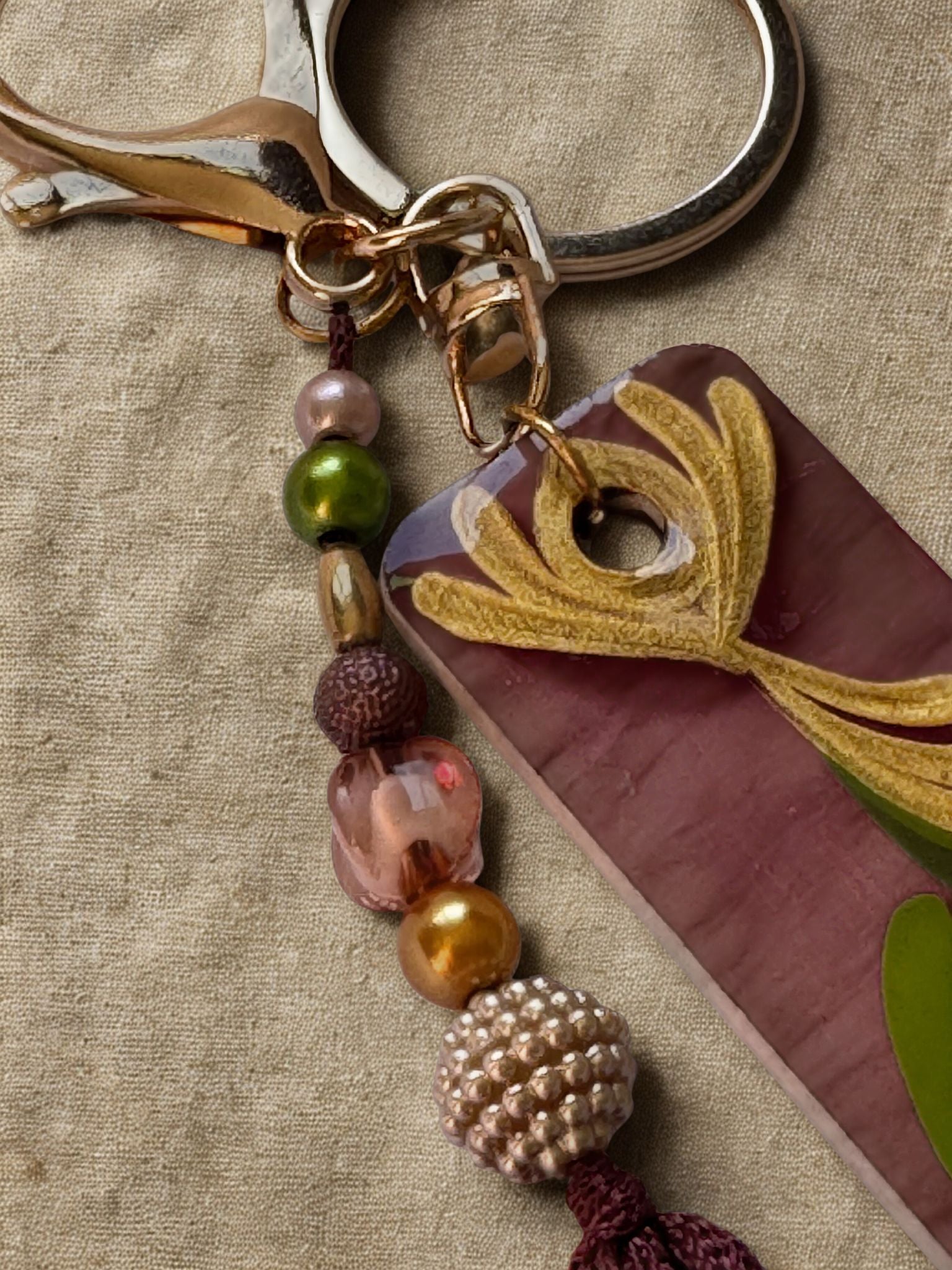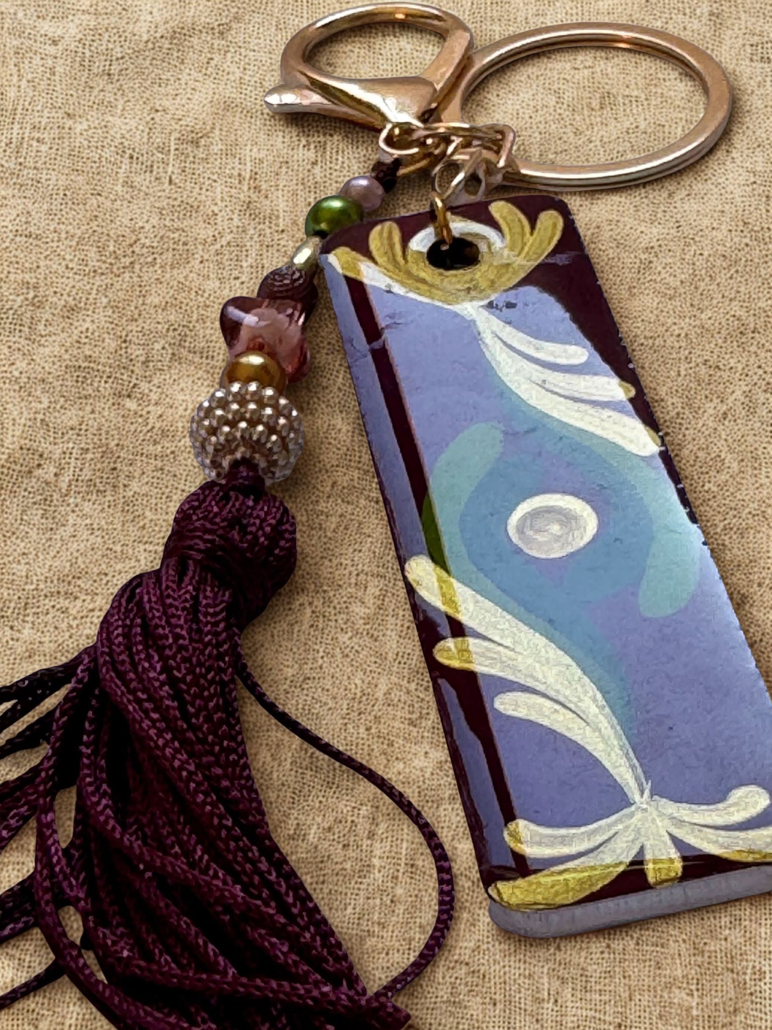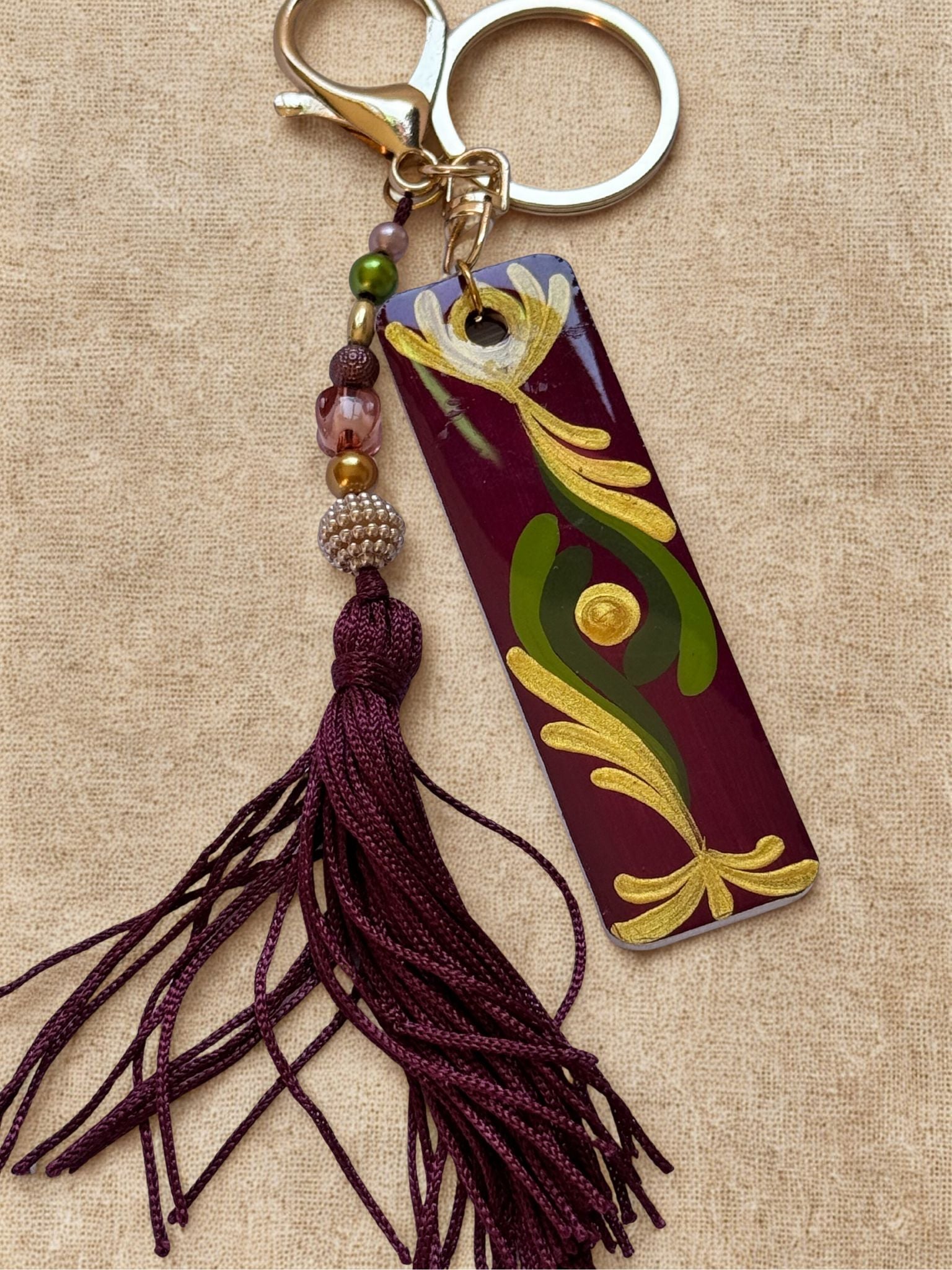 Chaveiro Artesanal Vinho & Dourado ✨