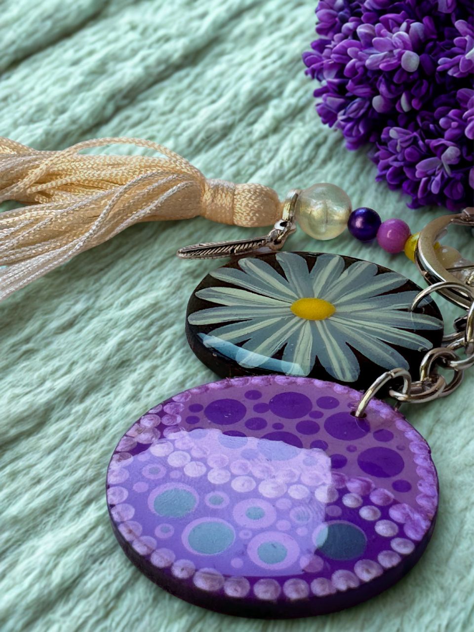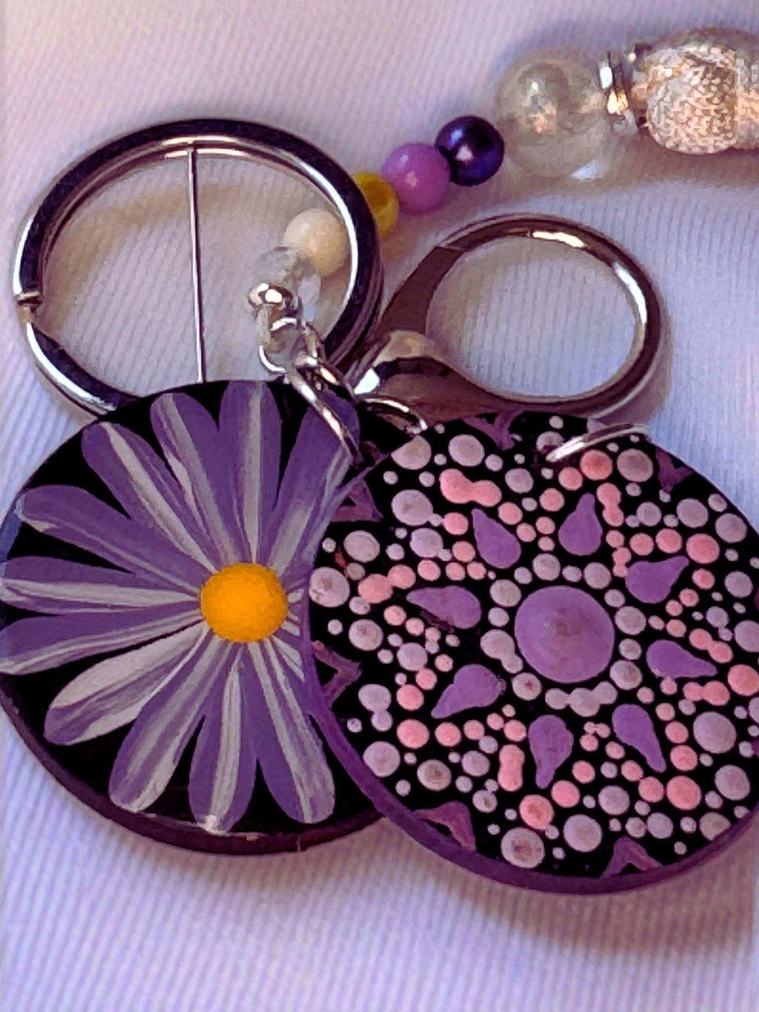 Chaveiro Margarida & Mandala Lilás – Arte Exclusiva