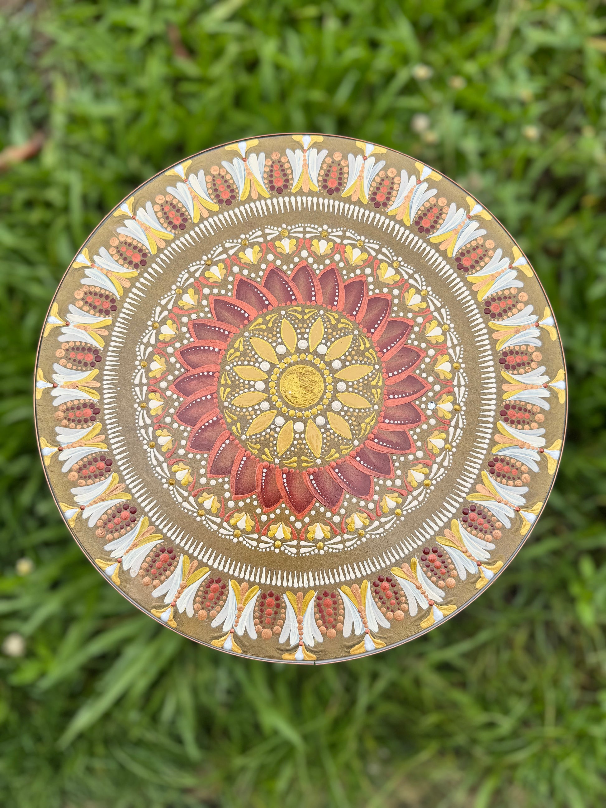 Uma mandala que honra o ciclo da vida, da semente ao fruto. Representa prosperidade, conexão com a natureza e a beleza dos ritmos internos. É um lembrete de que o que nasce do chão também pode tocar o céu.